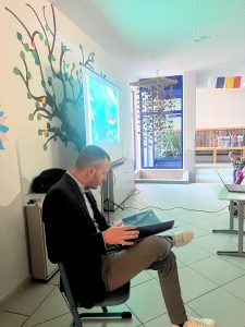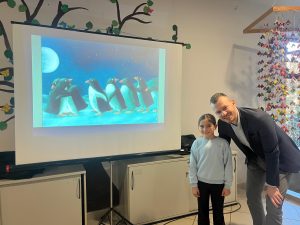 „Lesen ist kein Zeitvertreib, es ist die schönste Art, seine Zeit zu nutzen!“ Auf diese wunderschöne Art haben wir in der Lindenhofschule am 21.11.2025 unsere Zeit genutzt. Gleich nach der ersten Pause fanden sich alle SchülerInnen in der Aula ein, um Herrn Brauns Geschichte über einen kleinen Pinguin zu lauschen. Schnell schlossen die Kinder den kleinen Pinguin, der Buchstaben verdrehend von Scheissolle zu Scheissolle (= Eisscholle zu Eisscholle) hüpft, um eine Meise zu rachen (=Reise zu machen) in ihr Herz und hörten aufmerksam zu, um keinen Wortverdreher zu verpassen. In der abschließenden Fragerunde waren sich alle einig, dass dies eine großartige Geschichte war und Vorlesen einfach eine der wunderbarsten Möglichkeiten ist, seine Zeit zu nutzen.