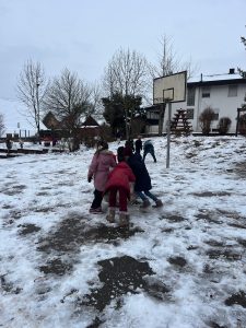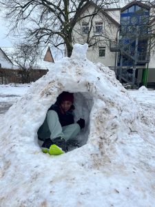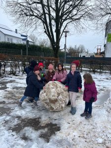 „Es schneit, es schneit, kommt alle aus dem Haus!“ Wer denkt nicht an die Zeile des altbekannten Liedes von Rolf Zuckowski, wenn alles so wunderbar winterlich aussieht! „Aus laut wird leis“, auch wenn diese Zeile nicht unbedingt auf die Pause zutrifft, so war es doch eine Pause voller Freude, ausgelassenen Spielen und absoluter Zufriedenheit. Schnee tut einfach allen gut und sorgte dafür, dass nach dem richtigen Auspowern das Lernen im Warmen dann wieder umso besser gelang. Von uns aus darf es gerne noch ein wenig winterlich und schneereich bleiben!