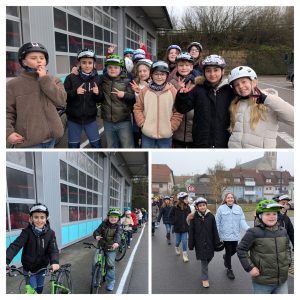 Frances E. Willard sagte: „Wer das Fahrrad beherrscht, beherrscht auch das Leben!“ Und das ist doch Anlass genug mit unseren Viertklässlern für die Fahrradprüfung zu trainieren. In den letzten Wochen haben wir kräftig (ohne Fahrräder) geübt: Vorfahrt, Anfahren, Links und Rechts abbiegen, Umfahren eines Hindernisses… Man glaubt nicht, was es da alles zu lernen gibt und wie schwer das ist. Umso größer war am Mittwoch, 25.Februar 2026, die Freude, als es nun endlich auf die Räder ging. Konzentriert fuhren alle auf dem Parkplatz des Reiseunternehmens Müller und wirklich jeder konnte in dieser Stunde große Fortschritte machen! Also: Rauf auf die Räder, Rad beherrschen und somit auch das Leben beherrschen!