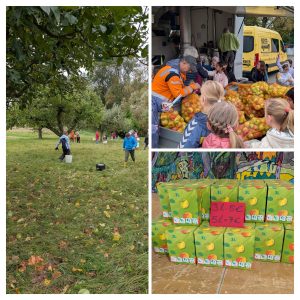 Auch in diesem Jahr durften die 4. Klässler der Lindenhofschule gleich zu Beginn des Schuljahres auf der Streuobstwiese „Rot“ bei der Apfelernte helfen. Am Dienstag, den 23.09.2025 wurde gemeinsam fleißig gesammelt und so kamen die 38 Kinder auf 520 kg Äpfel. Allen hat es viel Spaß gemacht. Zwei Tage später konnten die Schülerinnen und Schüler dann ihre eigene Ernte auch noch zu Apfelsaft verarbeiten. Das Saftmobil zeigte eindrücklich, wie aus den vielen Äpfeln dann der leckere Saft gepresst wird. Nun haben die Klasse 4a und 4b über 300 Liter Saft, die verkauft werden können. Der Erlös kommt den Förderverein der Schule zu Gute. Vielen Dank an alle, die dieses Apfelprojekt möglich gemacht haben. Und nächstes Jahr kommen wir wieder, denn! One apple a day, keeps the doctor away.